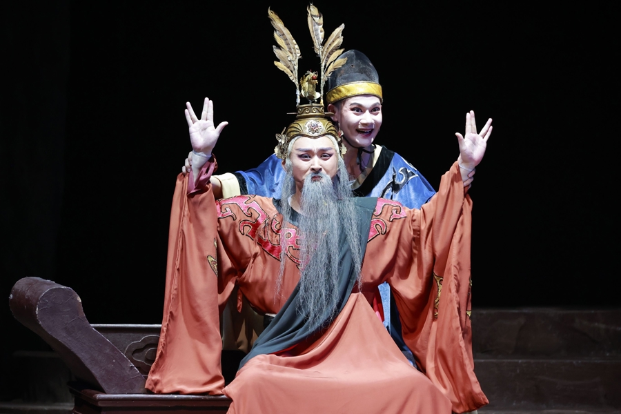 作为“都市新淮剧”的开创性作品,《金龙与蜉蝣》自1993年问世以来,便以思想的深刻性和舞台语言的创新性引发业界瞩目。此次亮相的传承版,由陈继云、王俊杰、赵悦、徐琪等实力派演员倾情演绎,将王子金龙在权力迷局中的沉沦与挣扎、亲子蜉蝣满怀希冀却遭命运嘲弄的悲剧,刻画得入木三分。简约写意的舞台设计,搭配苍凉醇厚的唱腔,将古希腊式的悲剧力量与淮剧独特韵味巧妙融合,令观众在震撼之余陷入沉思。